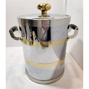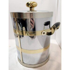 Vintage Kraftware Two-Toned Chrome & Brass Ice Bucket w/Insulated Plastic Lining