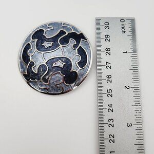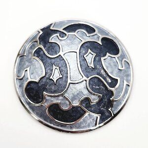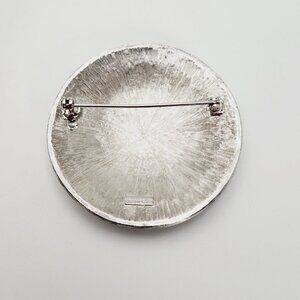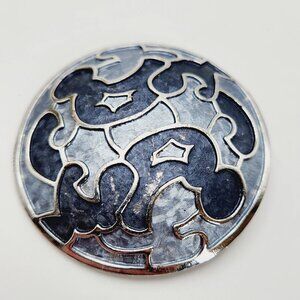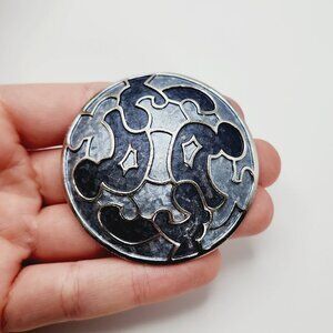 Vintage Kramer Abstract Blue Textured Round Silver Tone Large Brooch