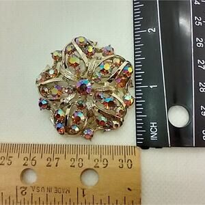Vintage Kramer Brooch and Earrings Set AB Rhinestone Gold Tone