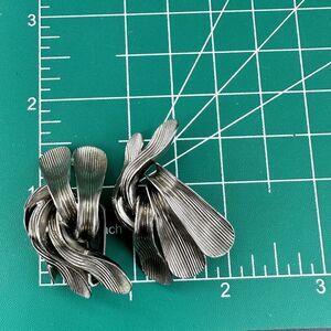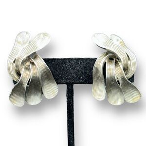 Vintage Kramer Clip-On Earrings Art Deco Textured Silver Plated