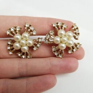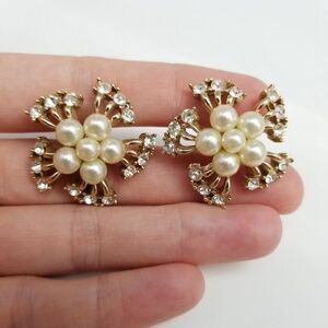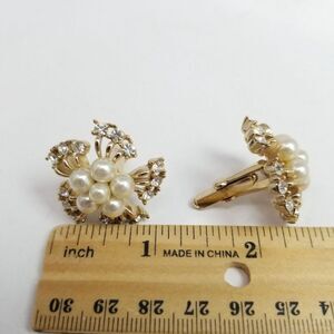 Vintage Kramer Floral Shape Cufflinks, Faux Pearl Center, Gold Tone Estate