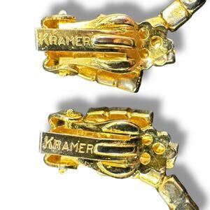 Vintage Kramer New York Red/White/Blue Rhinestone Gold Tone Clip Earrings