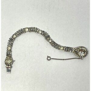 Vintage Kramer Of New York Bracelet Silver Tone Clear Rhinestone Safety Chain 7"