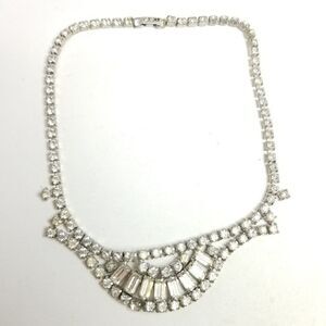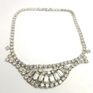 Vintage Kramer Rhinestone Collar Necklace, Silver Tone Sparkle, Estate