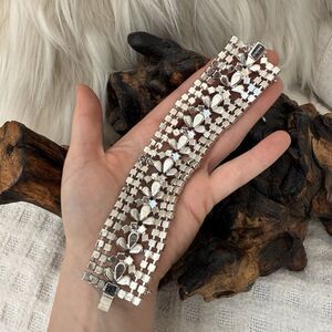 Vintage Kramer Wide Bracelet 7" Clear Pear Rhinestone Cluster Wedding Formal