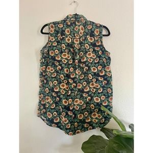 Vintage Krazy Kat 90s Women's Button Up Sunflower Tank Top Sz L