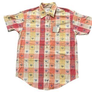 Vintage Krazy Kat 80s Button Down Shirt Heart Patchwork Size Medium Men NEW