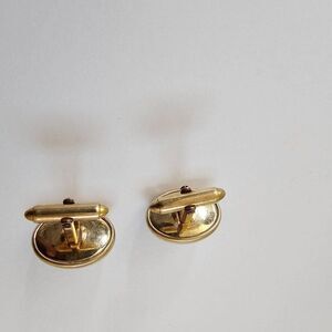 Vintage Kreisler USA 14KT RG Gold Plated Overlay Blue Oval Glass Cufflinks MCM