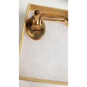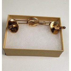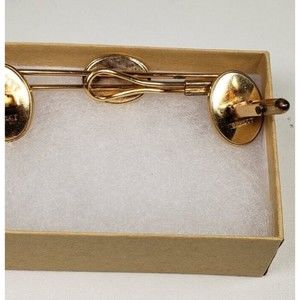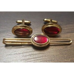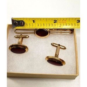 Cufflinks Set Krementz Correct Quality Yellow Gold Plated Red Match Tie Bar Vtg