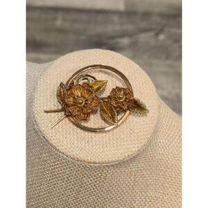 Vintage Krementz Gold plated Floral Brooch Pin signed designer Jewelry