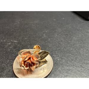Vintage signed Krementz yellow and rose gold tone rose leaf screw back earrings. I believe this is gold plated.
