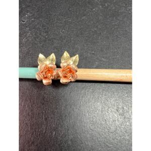 Vintage Krementz Rose and yellow gold tone Flower Leaf Screw Back Earrings