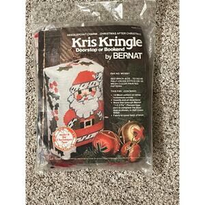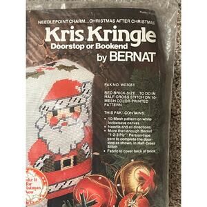 Vintage Kris Kringle Doorstop Bookend BERNAT #W03051 Needlepoint Christmas Santa