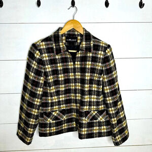 Add a bold pop of color to your vintage collection with this stunning Krizia Maglia cardigan. Made in Italy, this rare piece features a vibrant geometric abstract pattern in deep purple, black, rust, and burgundy hues. Crafted from a luxurious mohair and wool blend, this cozy sweater is soft, warm, and full of 80s/90s retro charm.