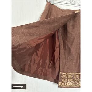 Vintage Krizia Maxi Skirt Womens 4 Silk Brown Beaded Bottom Boho Style