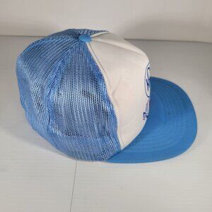 This vintage Kroger mesh trucker hat from the 80s features a stylish red, white, and blue design. Perfect for collectors or retro fashion enthusiasts, it offers a unique nostalgic appeal while providing comfort and breathability.