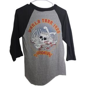 Vintage Krokus Eat The Rich 1983 Tour Shirt Metal Raglan Tee Concert Medium