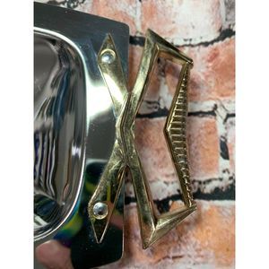 Vintage Kromex MCM Bread Roll Serving Tray Shiny Silver Tone Brass Handles USA