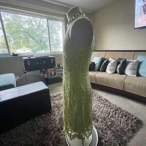 The Vintage Kroshetta by Papillion Green Lined Fit & Flare Dress in size Large is a charming piece perfect for various occasions such as weddings, parties, or formal events.