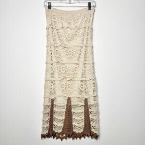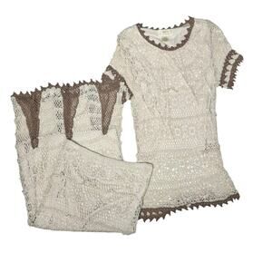 Vintage Kroshetta by Papillon Crochet Beaded 90s Skirt Set Beach Boho Medium