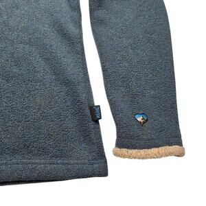 Vintage Kuhl Sweater Womens Large Blue Alfpaca Fleece 1/4 Zip Pullover Sherpa. Measurements in photos