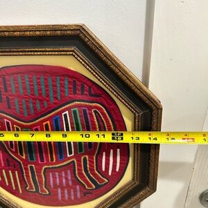 Mola art is created using a reverse appliqué technique, where layers of fabric are sewn together and then cut away to reveal the colors of the underlying layers.
