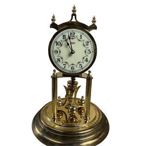 Vintage Kundo Anniversary Clock Brass Floral Motifs Glass Dome - Ubtested