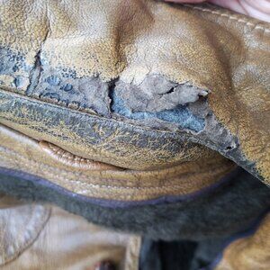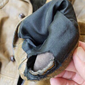 The collar edge is moderately worn and frayed, and inside cuff linings are partially separated (Please See Detailed Photos).