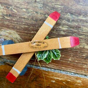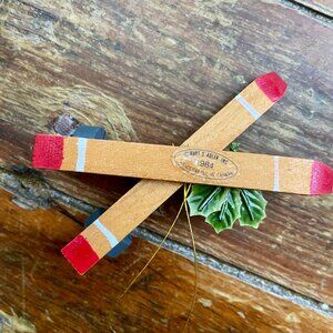 Vintage Kurt Adler 1984 Wood Crossed Snow Skis Poles Christmas Ornament Taiwan