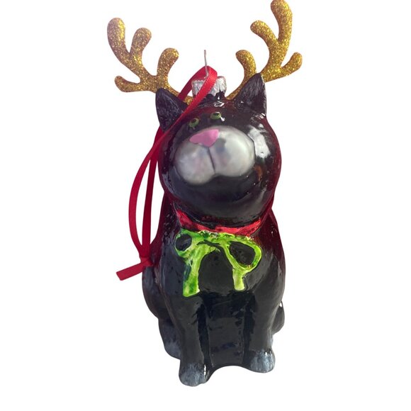 Vintage Kurt Adler Linnea Riley Glass Cat as Reindeer Ornament Art Inst Chicago
