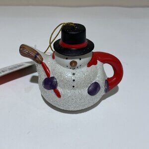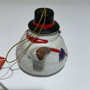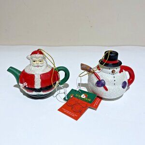 Vintage Kurt Adler Ornaments Santa Claus Snowman Tea Pot Glitter Set of 2 NWT