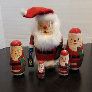 Vintage Kurt S Adler Santa Claus Nesting Dolls Christmas Hand Painted 5 Pieces
