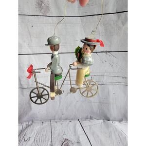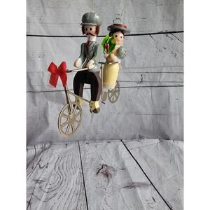Vintage Kurt S Adler Wood Christmas Ornament 1983 Couple on Tandem Bicycle