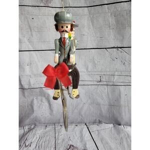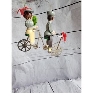 Vintage Kurt S Adler Wood Christmas Ornament 1983 Couple on Tandem Bicycle in good condition