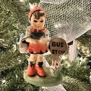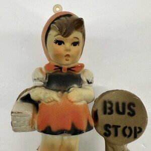Vintage Kurt S Adler little German girl at Bus Stop Christmas ornament. Hummel like. Plastic but may be celluloid. Great condition. See pictures for measurements and condition.