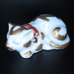 Vintage Kutani Neko, a Japanese Porcelain Sleeping Cat Figurine