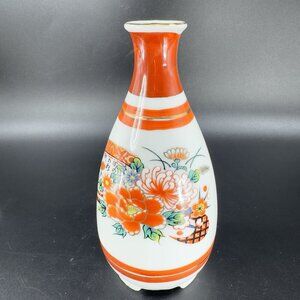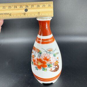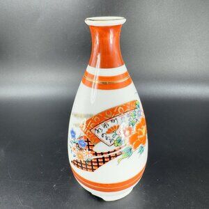Vintage Kutani Sake Bottle Vase Floral Gold Pattern Porcelain Bud Vase Signed