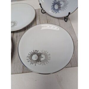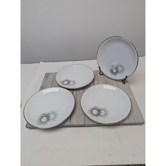 Vintage Kutani Set 4 Salad Plates 7 1/2" White Silver Gray Bursts Japan