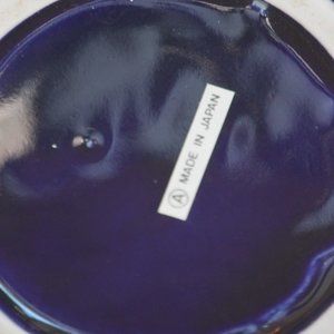 This is a vintage 1980s cobalt blue art pottery vase from Japan in the Kutani style.