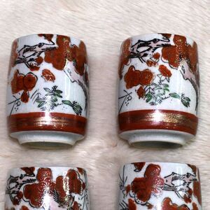 Vintage Kutani Style Hand Painted Asian Tea cups Large Sake Set