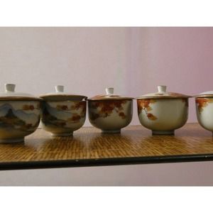 Vintage Kutani Yunomi, Lidded Tea Cup Set, With Autumnal Décor