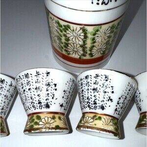 This product is a vintage Kutani ware SAKE liqueur bottle and SAKE shot cup set, originating from Japan. The brand Kutani ware is known for its high-quality craftsmanship and traditional designs, making this set a unique and collectible piece for lovers of Japanese culture and liquor enthusiasts. The bottle and shot cup are intricately designed, adding a touch of elegance to any collection or display. 5 piece set,