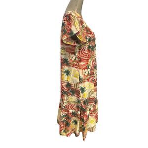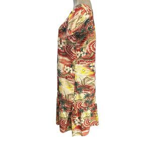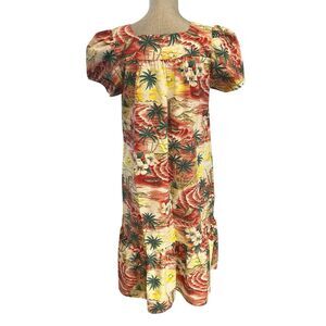 Vintage Ky's Hawaiian Muumuu Dress Women's Size M Red Yellow Petal Sleeves