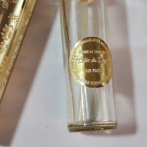 Vintage small golden L'Air da Temps perfume bottle. It is empty. There is some tarnish on the metal as shown in the photos 3 3/4" long