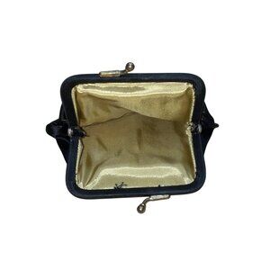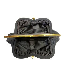 Vintage L And M Women’s Black Satin With Gold Frame & Pouch Evening Clutch