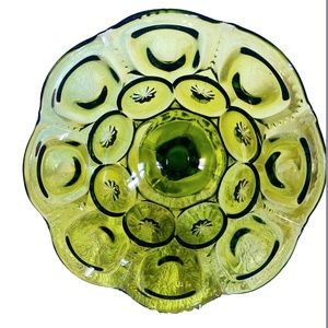 Vintage glassware, mid century modern, collectible glass, vintage green glass, footed glass collectible, wedding gift, anniversary gift, housewarming gift, Christmas dish, birthday gift, Christmas gift, Christmas party, shabby chic, granny chic.