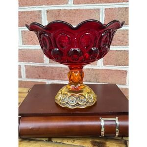 Vintage LE SMITH Moon & Star Amberina Open Glass Compote Candy Dish