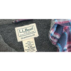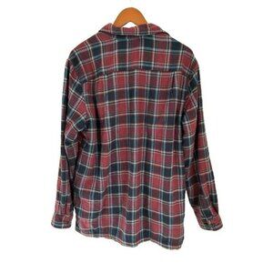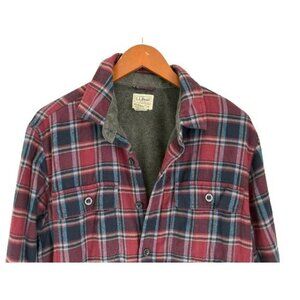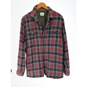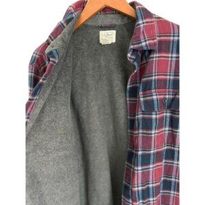 Vintage L. L. Bean Shirt Fleece Lining Fronts Pocket Workware Red Gray Tartan