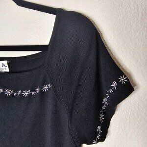 Vintage L Top Black Silk Blend Knit Floral Embroidery Whimsigoth Dark Cottage