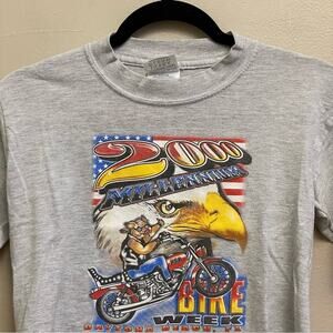 Details: short sleeve t-shirt vintage raw hemline 2000 Millennium Bike Week Daytona Beach, FL eagle motorcycle biker hog American flag crew neck